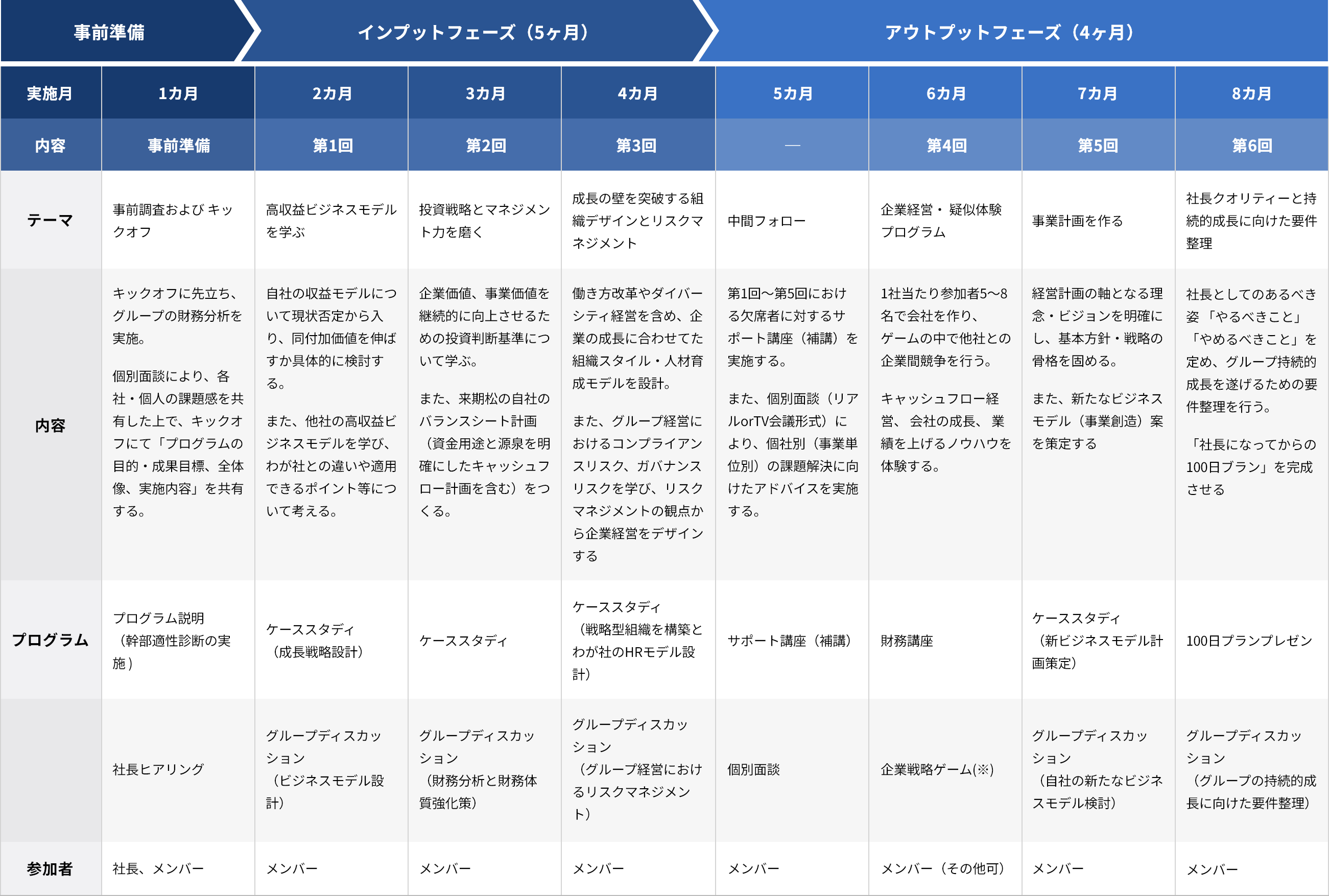 経営人材・次期社長候補を社長レベルへと成長させます。