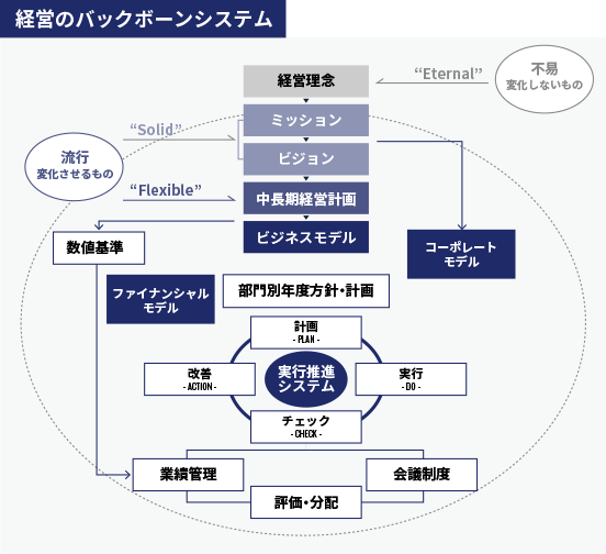 右の図はタナベコンサルティングが提唱する経営コンセプト"バックボーンシステム"を表しています。